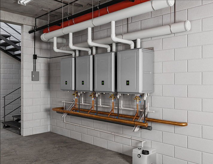In a multi-system setup, the Noritz commercial units will communicate with one another and work in unison to even out the load on each individual unit, maximizing output and system life.